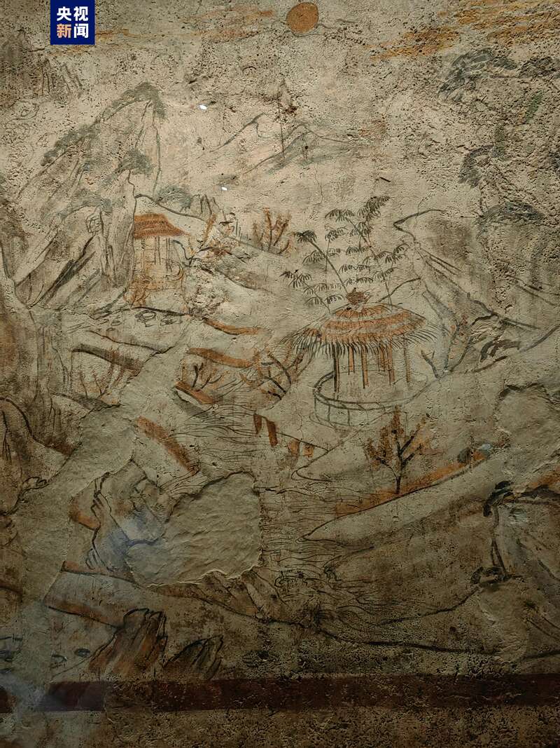 此次展出的壁画包括拱手仕女图、高士图、山水图、朱雀图、玄武图、乐舞图等,其中发现于韩休墓室北壁东侧的山水图,是我国迄今所见最早的古代独幅山水壁画,将我国绘画史上独幅写实山水的历史从宋代提前到了唐代;东壁的两组歌舞伎乐共舞图,完整再现了唐代乐舞的场景,对中国古代乐舞研究具有重要意义,开创了同类题材的新篇章。