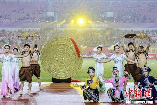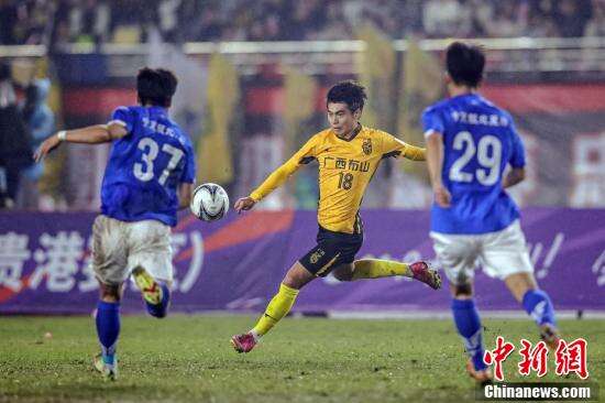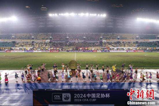 3月15日晚,2024中国足协杯开幕式暨揭幕战在广西贵港市体育中心体育场举行,广西布山队在揭幕战中以2比0战胜宁夏平罗恒利队。2024中国足协杯参赛球队规模达到80支。图为比赛现场。