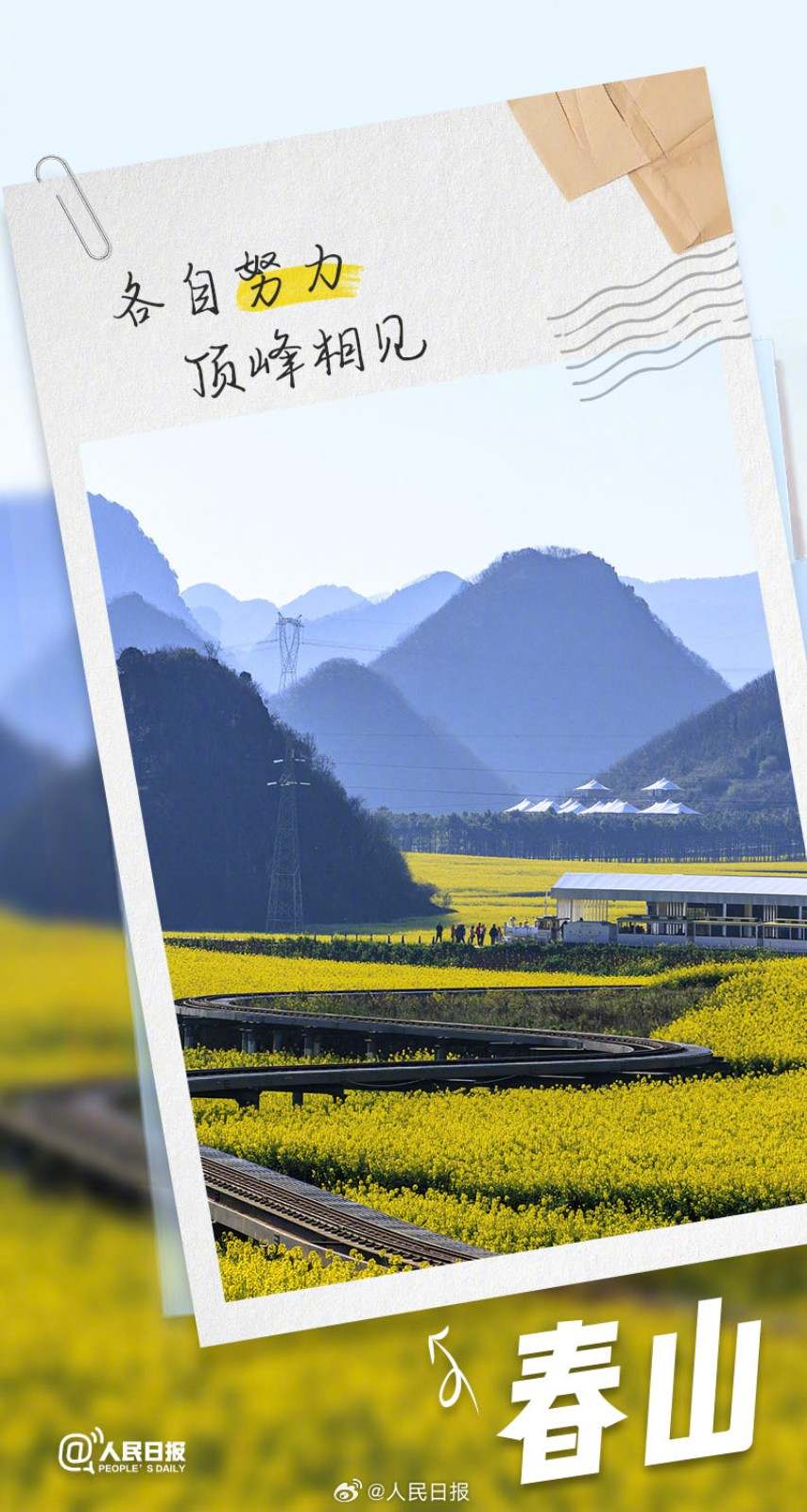 这个春天,愿你有“努力绽放,不负自己”的自信,有“向下扎根,向上生长”的坚韧,有“一分耕耘,一分收获”的成长。春日宜奋斗,播下一颗心愿的种子,再用努力和付出好好浇灌。有一种氛围感叫春天!迎着春光,一起出发!(来源:人民日报微博)
