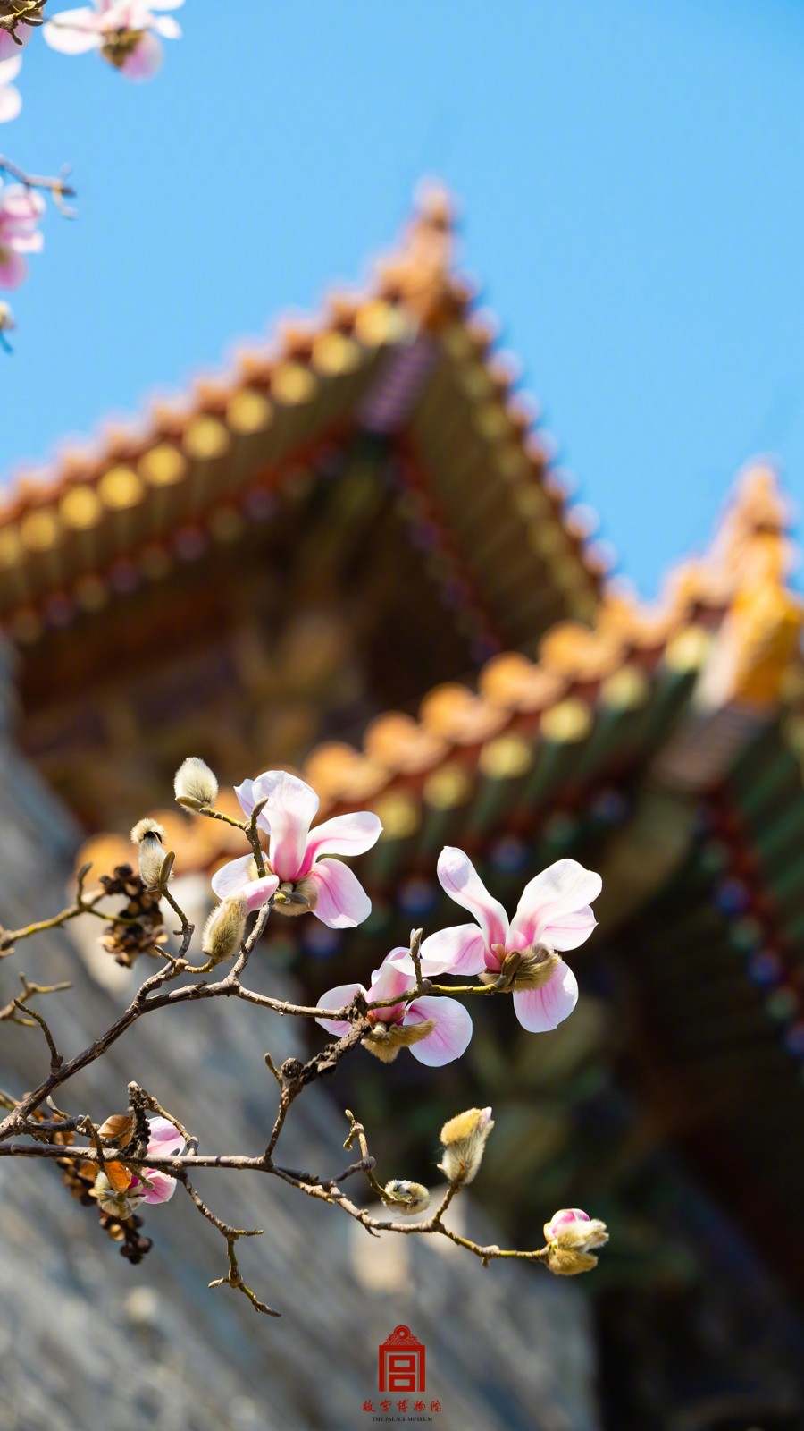 近日,故宫门外的玉兰开了。一树春意,正向阳生长。(来源:故宫博物院微博)