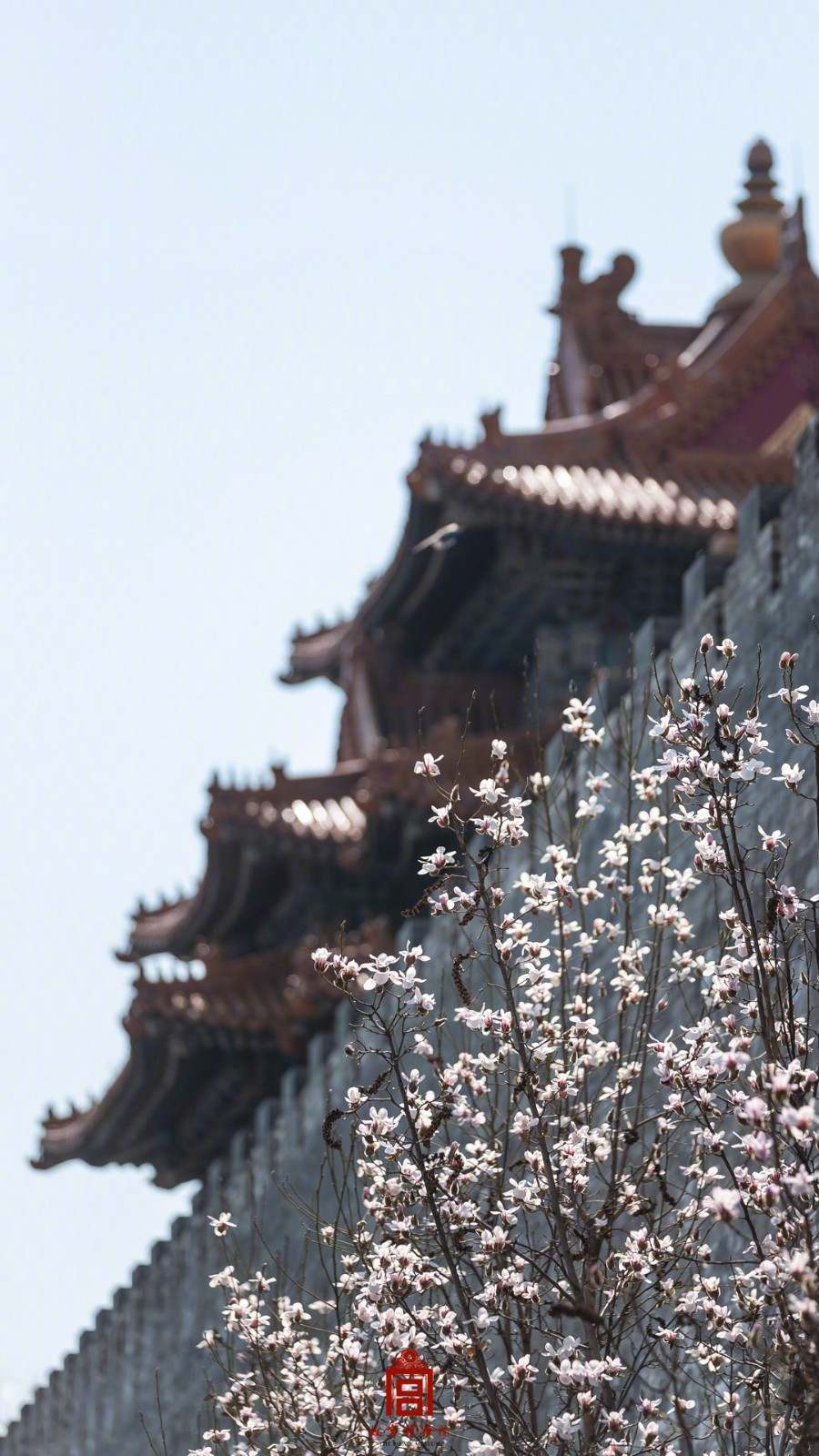近日,故宫门外的玉兰开了。一树春意,正向阳生长。