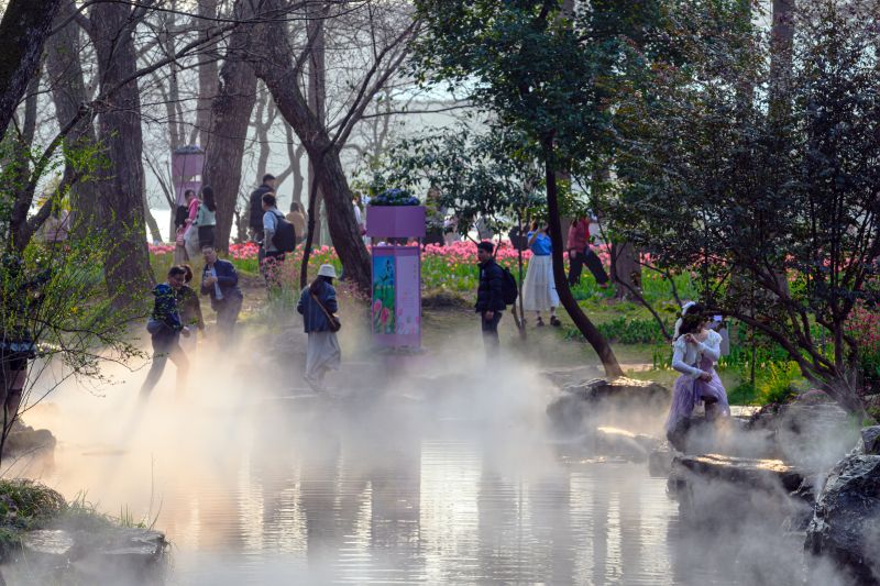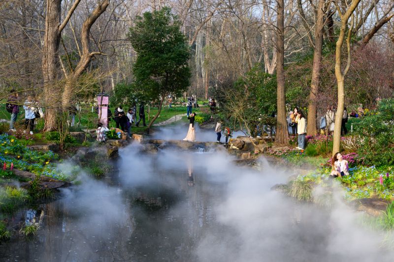2024年3月15日,南京中山植物园南园雾气飘渺。