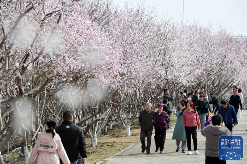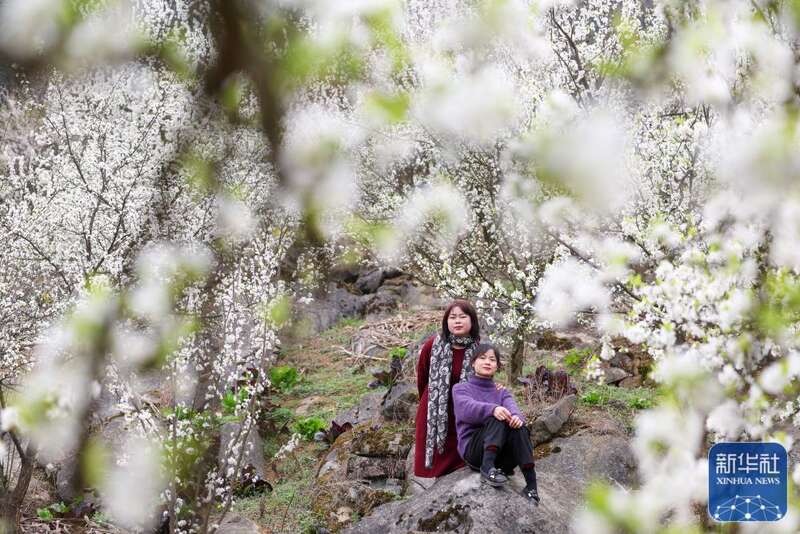 3月17日,市民在贵州省毕节市七星关区南山公园休闲赏花。新华社发(韩贤普摄)