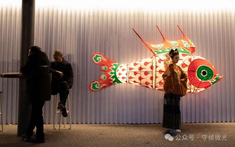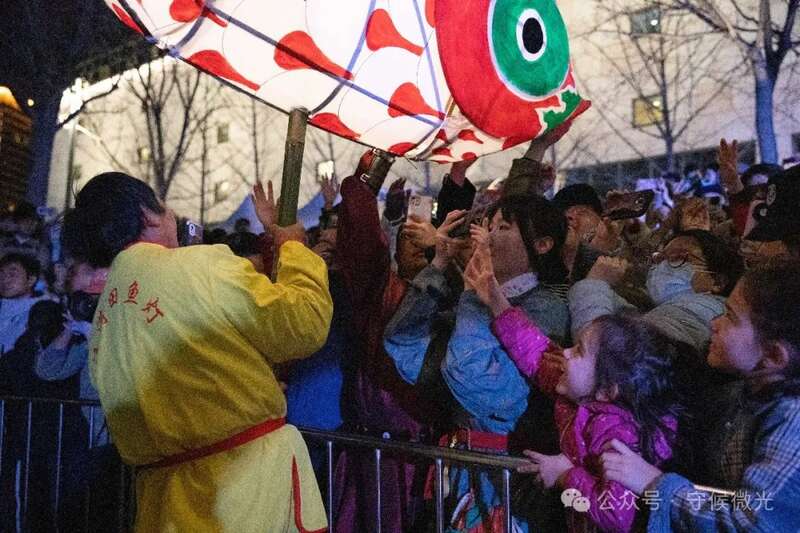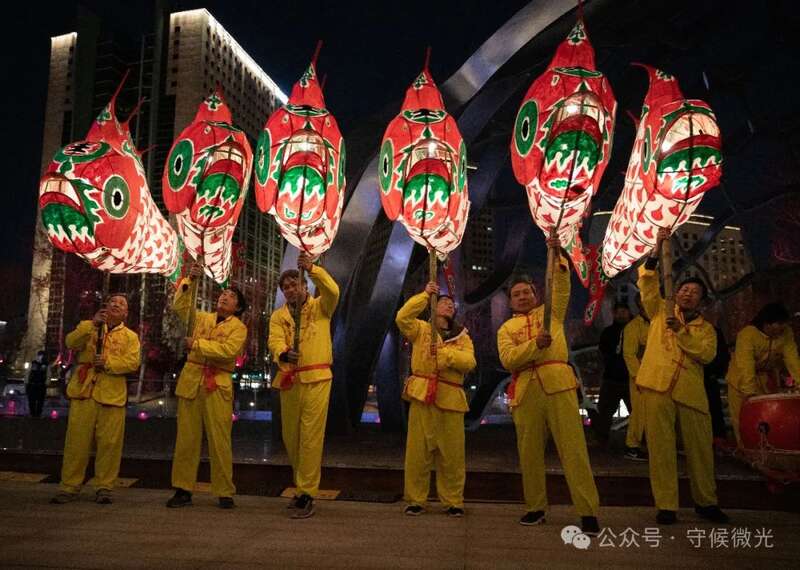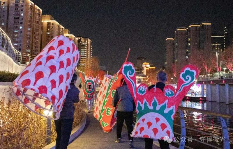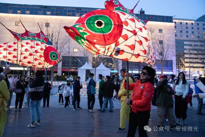 3月17日,北京亮马河燕莎码头,演出结束后,师傅们高举鱼灯谢场。