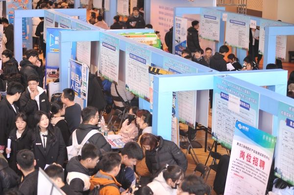 2024年3月19日,哈尔滨,校园巡回招聘会在黑龙江工程学院举行。300多家企业来到现场招贤纳士,提供了大量就岗位,吸引了许多应届毕业生前来应聘。