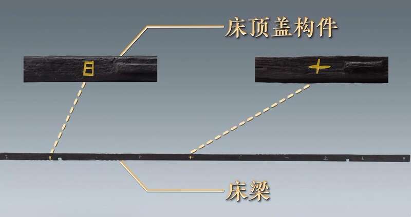 △ 床顶盖构件和床梁构件上的神秘图案符号成组。符号相同的构件可以严丝合缝地拼接在一起。