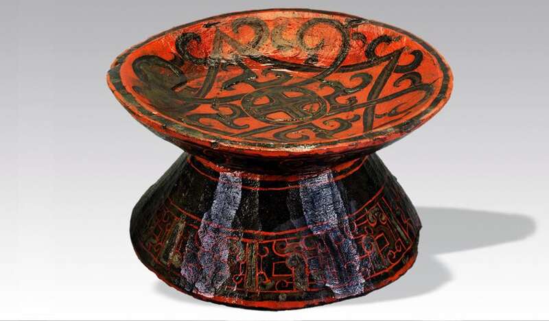 △ 漆豆,战国。成都商业街船棺葬出土,成都博物馆藏。