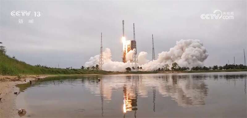 我们看到长征八号运载火箭已经点火起飞。长征八号是我国新一代中型运载火箭,使用的是液氧煤油和液氢液氧这两种清洁燃料。这也是它第一次执行探月工程的发射任务。