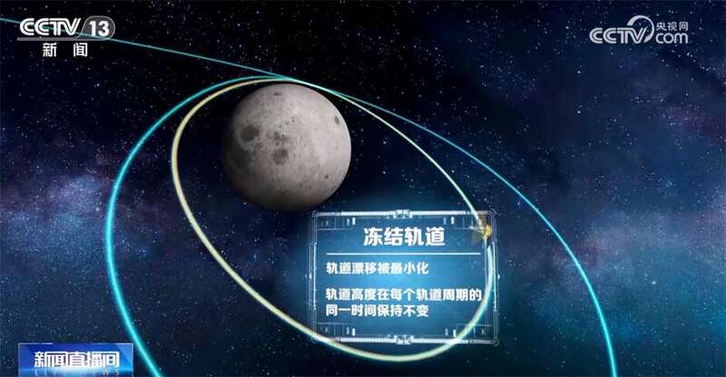 刚才提到了环月大椭圆冻结轨道,那什么是冻结轨道?所谓冻结轨道是一种特殊的航天器轨道,在这类轨道上运行的航天器,通过恰当地设计轨道参数,轨道漂移可以被最小化。通常位于这种轨道上的卫星在很长一段时间内,其轨道高度在每个轨道周期的同一时间是保持不变的。因此,一旦进入这个轨道,鹊桥二号将最大程度地节省燃料,能够保证它的轨道的远月点一直位于月球南极区域上方,从而确保了它在为期8年的设计寿命中,长时间、稳定地支持后续南极地区的探月任务。