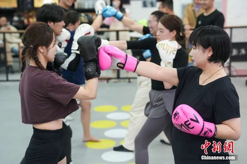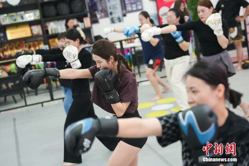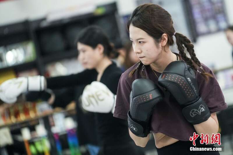 3月20日,山西太原一搏击馆内,女性学员正在练习拳击。电影《热辣滚烫》春节档热映,拳击运动随之备受关注,不少拳馆、健身房在春节后迎来“开门红”。太原各运动馆拳击课程来自女性的咨询和报名人数比例明显增加。通过拳击运动进行锻炼,成为不少女性的运动新选择。