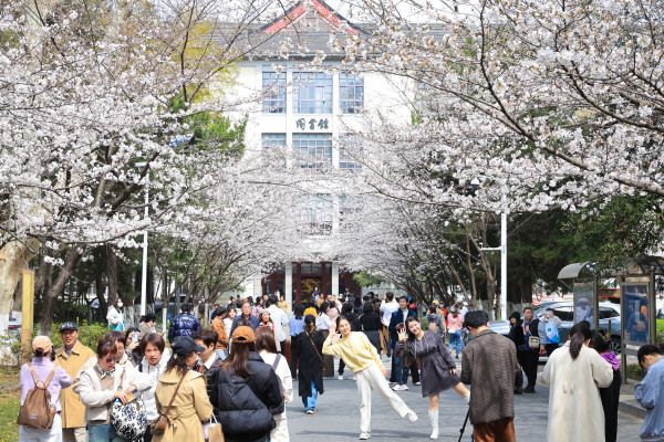 南京林业大学樱花绽放 赏花游客纷至沓来