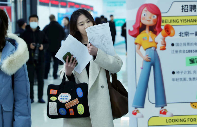 3月19日,北京高校大学生就业创业指导中心,一名女生在双选会现场。当日,一场毕业生双选会在这里举行,约90家用人企业为高校毕业生提供300多个岗位,招聘1000余人。视觉中国供图