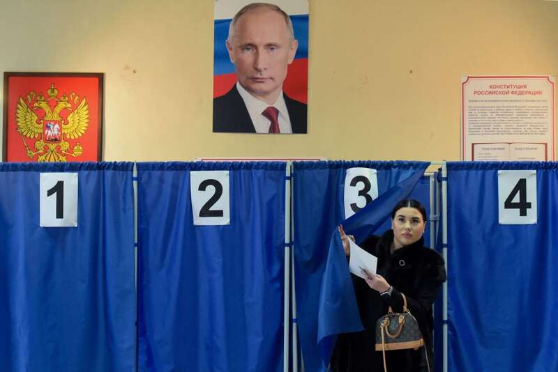 3月16日,顿涅茨克地区,一个投票站里,一名妇女在俄罗斯总统选举中投票。来自新华社的消息,俄罗斯中央选举委员会主席帕姆菲洛娃3月21日正式宣布俄总统选举结果,俄现任总统普京在选举中获胜。视觉中国供图