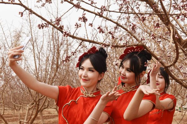 2024年3月20日,新疆吐鲁番,“新疆第一春 花开吐鲁番”2024吐鲁番杏花季在托克逊县夏镇南湖村万亩杏花园拉开序幕,该活动将持续至4月10日。