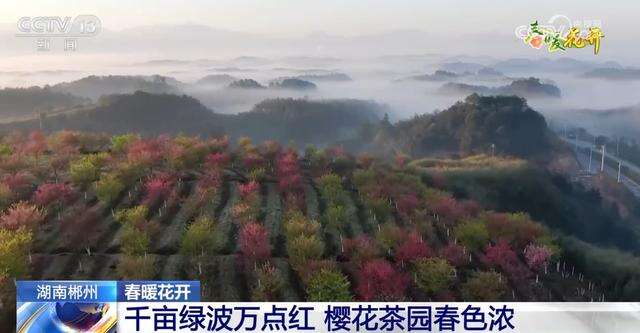 在湖南郴州高椅岭村1500亩茶园内,新茶吐绿、樱花绽放,灿若烟霞的樱花点缀在层叠的茶园间,谱写着春的诗篇。近年来,当地在种植茶树的基础上栽种了2000多株樱树,远处群山起伏,云雾缭绕,近处樱花吐蕊,蜜蜂飞舞。如果你逛到此地,大可以抬头观花,低头采茶,畅享惬意春光,邂逅缤纷浪漫。