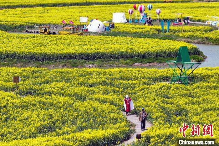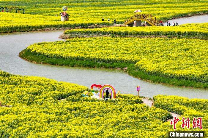春来滩地披金毯,万亩菜花湖上开。中新网记者 泱波 摄