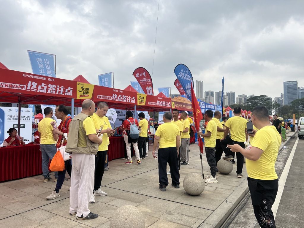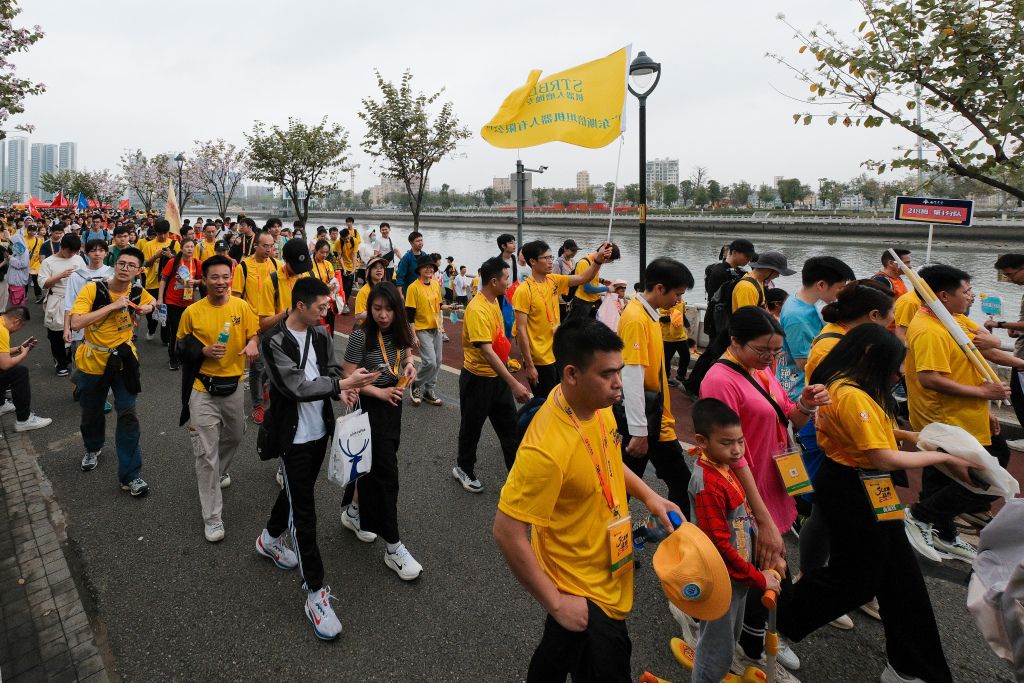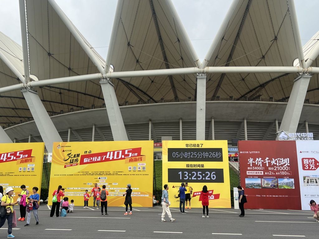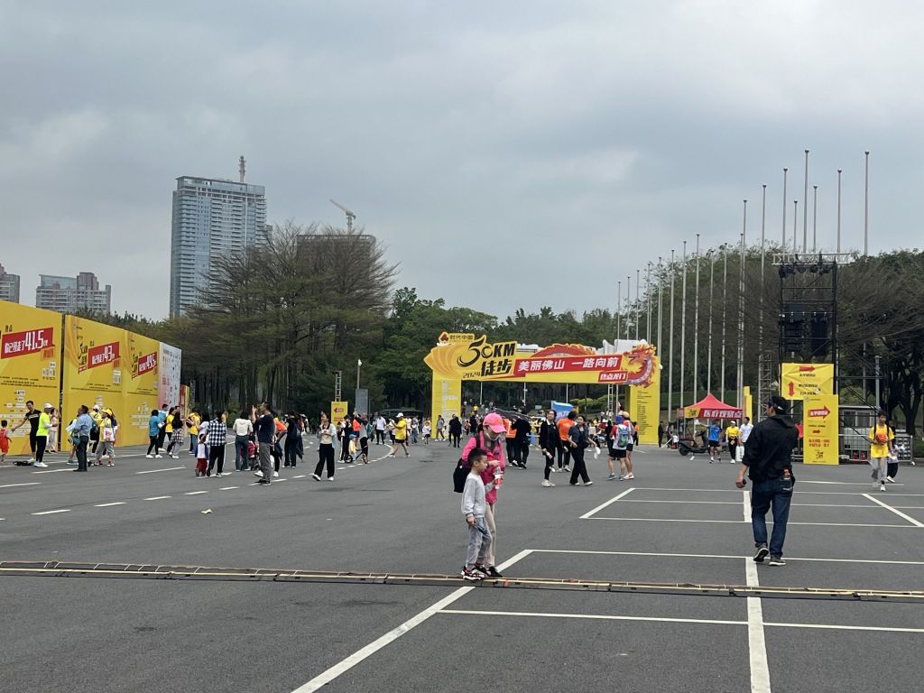 2024年3月23日,广东佛山,2024年50公里徒步活动如期举行,徒步群众到终点站打卡。