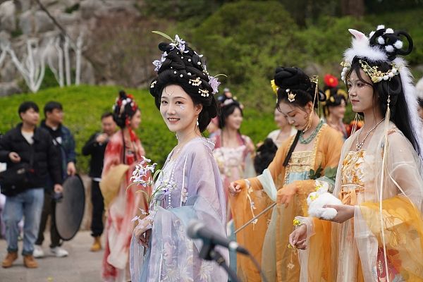 2024年3月23日,山东济南大明湖,泉在济南·共赏春花——2024济南花朝节在大明湖畔拉开序幕。花神巡游、国风汇演、园林市集、园林花市等齐聚大明湖。