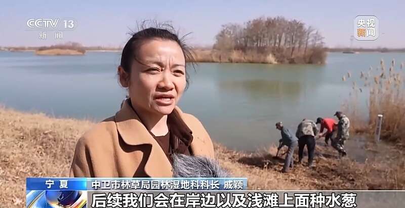 宁夏中卫市林草局园林湿地科科长 戚颖:后续我们会在岸边以及浅滩上面种水葱、菖蒲、芦苇之类的水生植物,这些水生植物对水体有一个净化的作用,并且对我们整个湿地丰富生物的多样性也会起到一个好的提升。