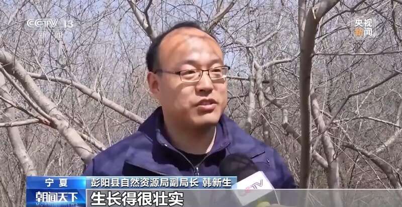 宁夏彭阳县自然资源局副局长 韩新生:你看这片林子,到现在已经有十年了,生长得很壮实。我们初步测算,水的利用效率从过去的不到50%提高到现在的80%左右。