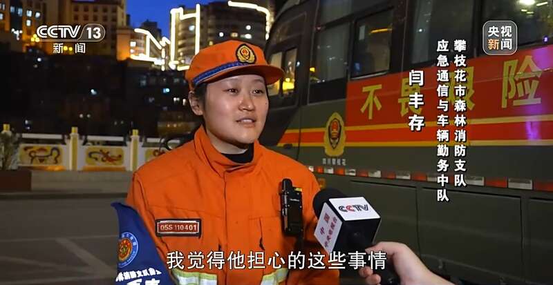 攀枝花市森林消防支队应急通信与车辆勤务中队 闫丰存:我第一次来前线他会很担心,他可能会经常问我在干什么、在哪里,我觉得他担心的这些事情过多,可能会分散他的注意力,然后我在下面时候也会很担心他在山上的情况。如果我不来前线的话,我可能就会联系不到他,但是至少我来了之后,我会第一时间知道他的消息。我有时候上山会送点饭、送点物资,我们就能见个面。