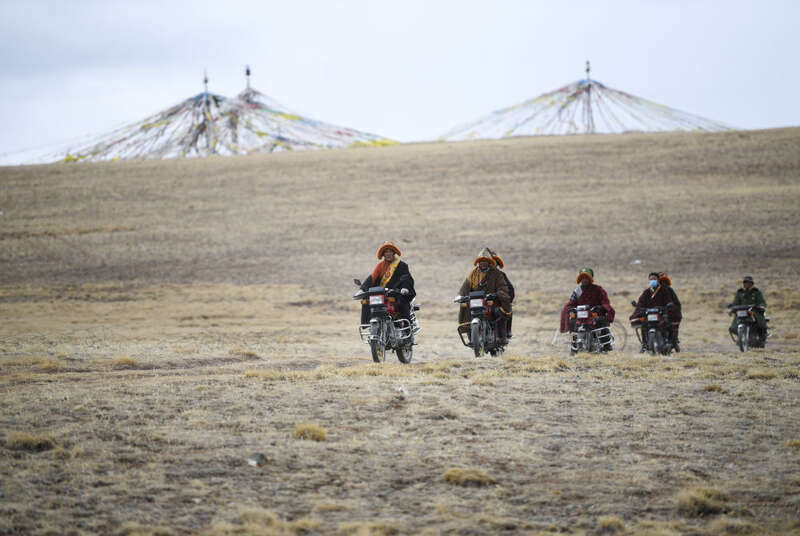 在青海省玉树藏族自治州曲麻莱县麻多乡约古宗列曲附近,生态管护员在巡护(2022年4月21日摄)。新华社记者 张龙 摄