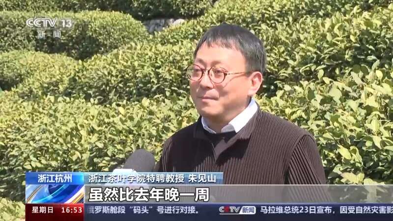 浙江茶叶学院特聘教授 朱见山:虽然比去年晚一周,但它成长周期就加长了,所以品质跟产量,反而会有一个比较好的增长。