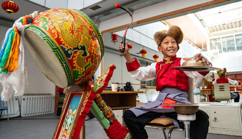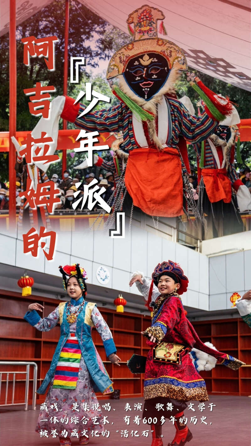 “我被藏戏深深吸引,觉得它太酷了。我的第一个唱腔是爷爷教的。他唱得那叫一个霸气。”这个梦想着未来能成为一名专业藏戏演员的男孩说。