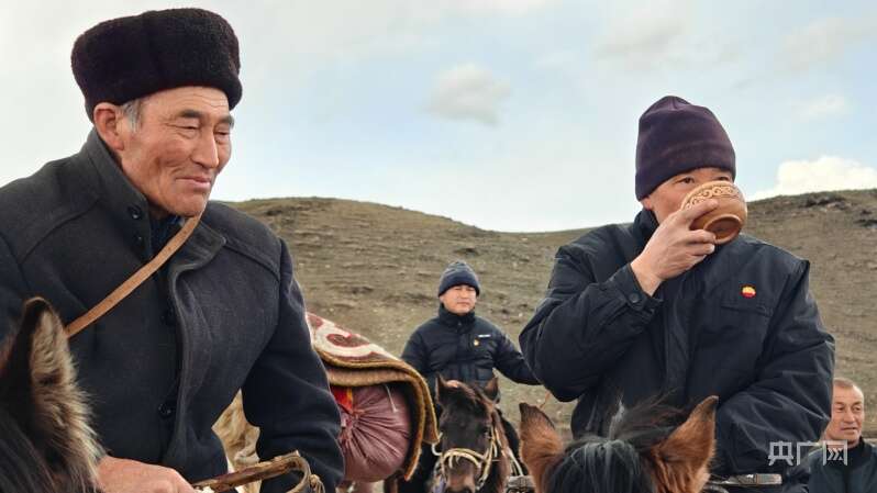 下午五点左右,沙尔克提·哈依尔什抵达“幸福驿站”,还未下马,先喝了一碗工作人员准备好的酸奶。为赶路的牧民和群众准备酸奶等饮品是这里的礼节,在将牛羊、马匹和骆驼安置好后,沙尔克提进入驿站吃饭、休息。