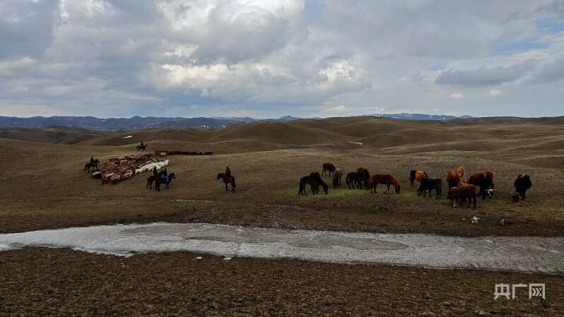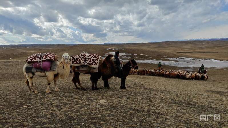 央广网托里3月27日消息(记者郭璁悦)春日渐暖,积雪融化,草木萌新芽,当前正值新疆牲畜春季转场的季节。每年这个时候,塔城地区托里县牧民就会赶着牛羊马匹,让骆驼背上行囊,沿着蜿蜒的牧道,走出“冬窝子”(冬季牧场),走向“春秋牧场”——哈拉八乌尔。