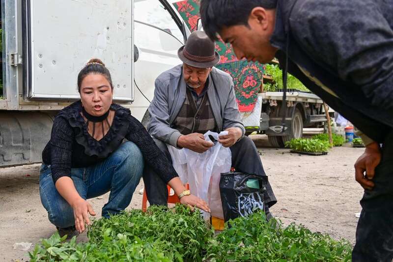 两人你搬我装,一会儿工夫,车厢货架上便摆满了育苗盘。第二天在巴扎上再见到她们时,菜苗已卖了大半。“车上12000多棵苗子,已经卖了10000棵。”米哈热古丽兴奋地告诉记者,看见合作伙伴挣钱,自己也跟着高兴。
