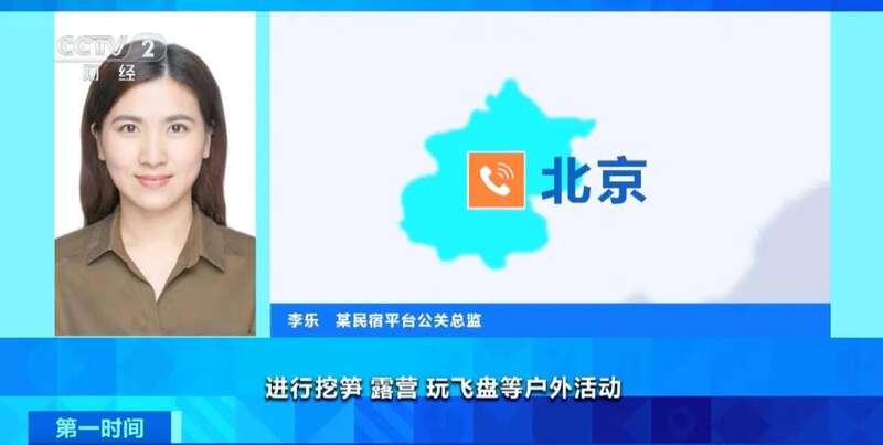 某民宿平台公关总监 李乐:不少民宿推出了踏青赏花相关的体验活动,为客人提供汉服妆造、旅行策划。还有的民宿房东会带客人在民宿周围进行挖笋、露营、玩飞盘等户外活动,也非常受欢迎。