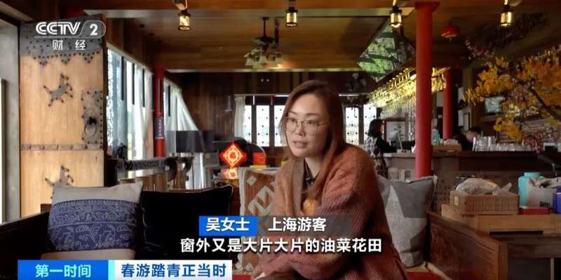 上海游客 吴女士:这个民宿窗外是大片的油菜花田,离我想去的景区很近,非常方便。这次主要是看油菜花、逛古村落、吃农家菜。