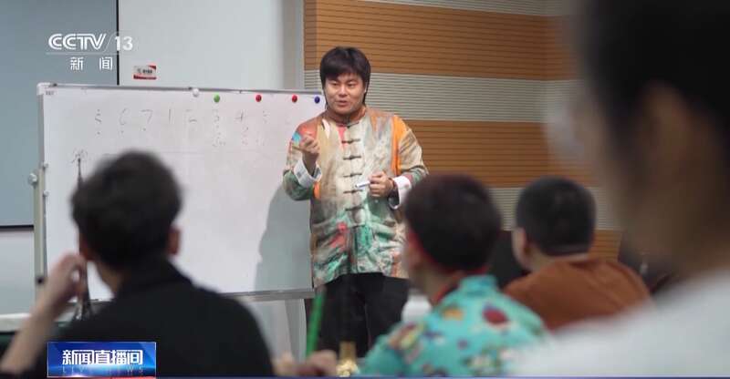 唢呐班的授课老师薛天龙是一位青年演奏者,也是一位国潮音乐制作人,每节课他都会用不同的表演形式开场,让学员们耳目一新,他说,他想用当下年轻人的语言认识唢呐。薛天龙幽默诙谐的教学风格,也让越来越多的年轻人了解传统民乐、爱上传统文化。