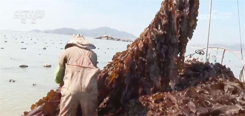 眼下,福建福州连江县10.3万亩优质海带进入采收期,不少海带养殖户抢抓晴好天气收割海带,海面上一片热闹、繁忙景象。