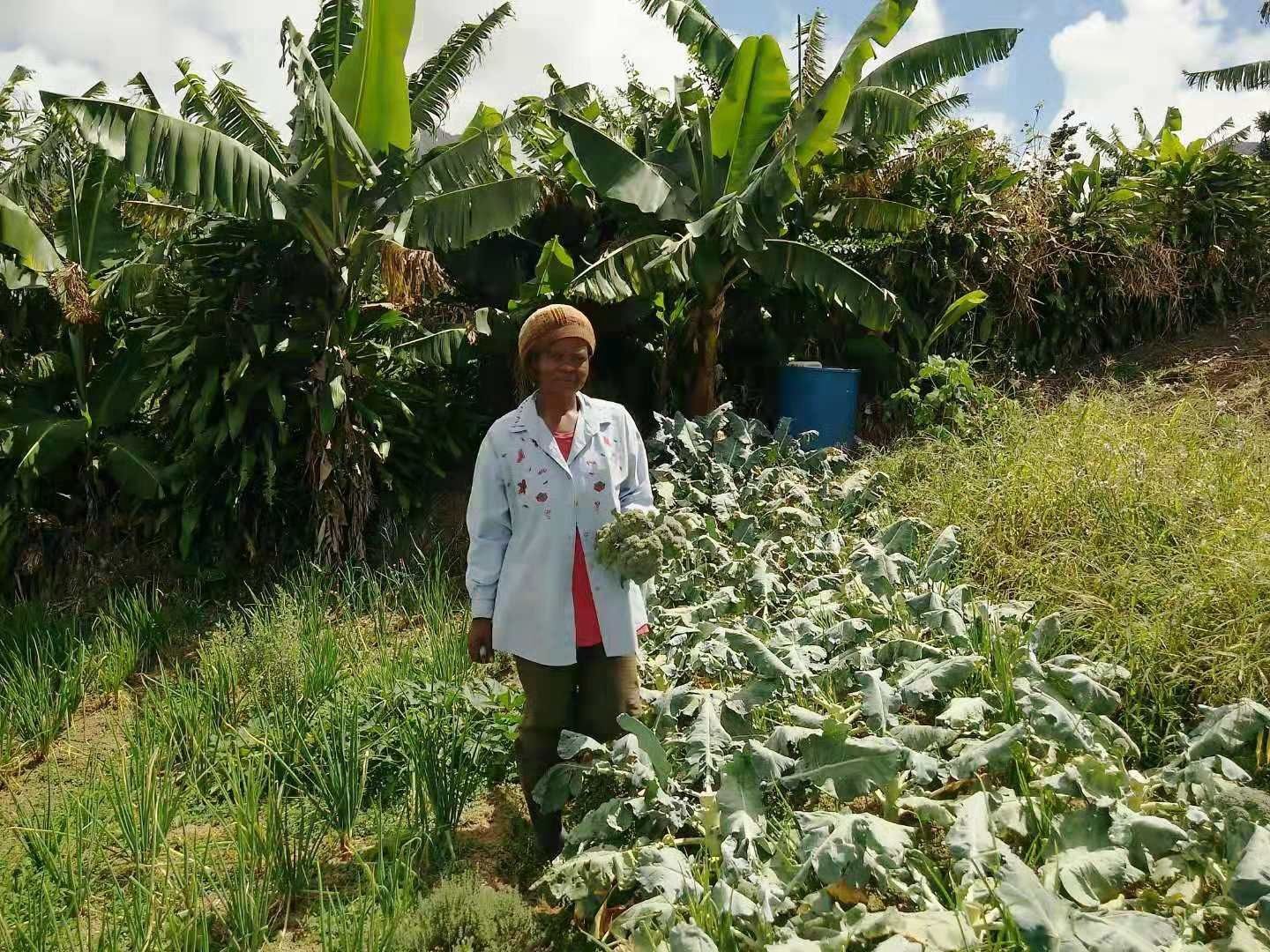 还有一位叫罗斯玛丽的农户,在当地小有名气,她家园子里1000 株中国品种的西蓝花颗颗饱满,郁郁葱葱。一年就能采收西蓝花5 批次,收益超过1.8 万东加勒比元(约合4.3 万元人民币)。但在几年前,当中国农业专家上门推荐中国农作物品种时,罗斯玛丽还有些不敢尝试。