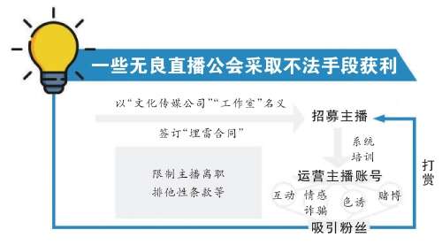 北京天驰君泰律师事务所高级合伙人、天泽娱乐法创始人郑小强律师说,此类情形往往发生在比较小且不正规的直播公会,其本质是披着合法的外衣做着违法的事情,很可能构成民事欺诈行为。