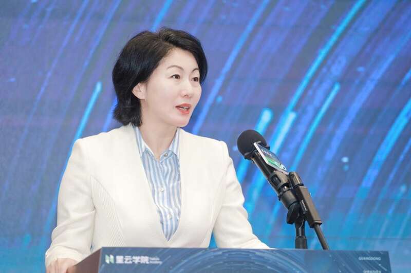欧美同学基金会秘书长李海菊在启动仪式上致辞。主办方供图