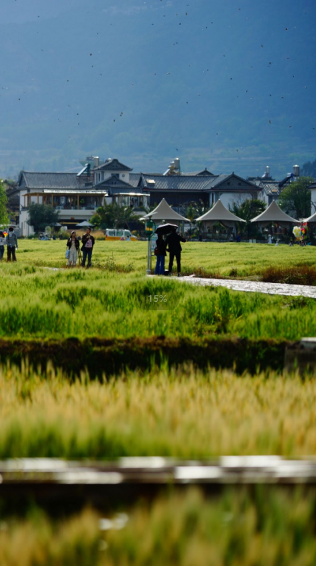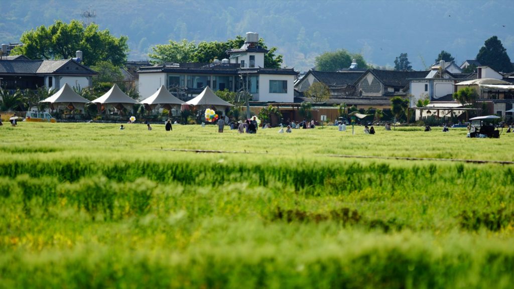 青瓦白墙的民居院落掩映在大片稻田中,在蓝天白云及喜林苑土红色围墙的映衬下,田园风情宛如一幅油画;古镇里,沿街摆开的扎染小铺、飘着香气的喜洲粑粑,又为这里增添了许多生活气息——当采风团队一行来到喜洲古镇,瞬间被这里的历史与文化气息治愈。