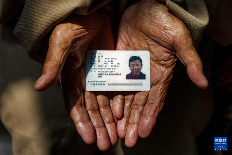 白玛老人展示自己的身份证(3月27日摄)。新华社记者 姜帆 摄
