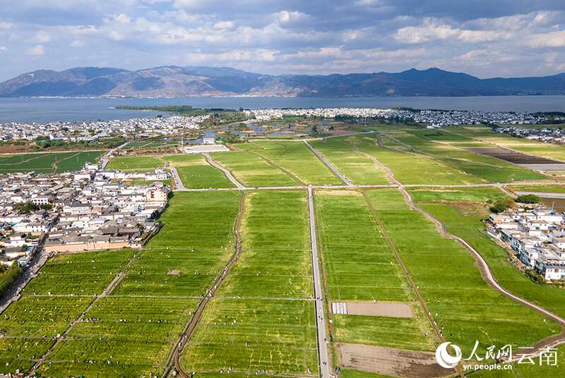 洱海之畔的麦田风景。人民网记者 符皓摄