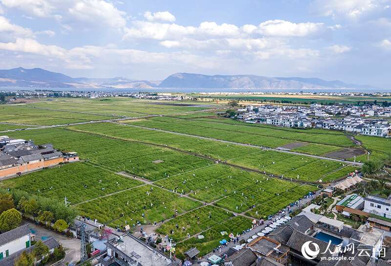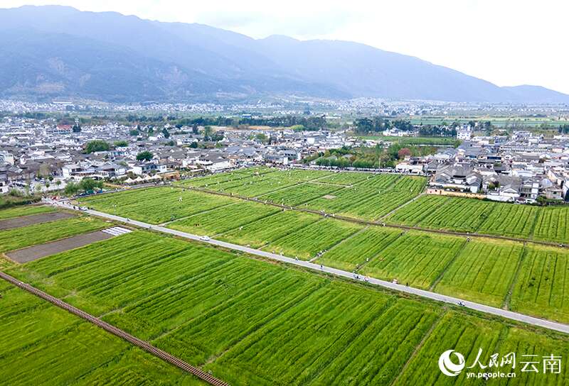人民网大理4月2日电 (记者符皓)春风拂过,田园里麦浪滚滚……清明前夕,在云南大理洱海之畔的喜洲古镇,连片种植的麦田里,不断有游人沿着田埂进出拍照打卡。