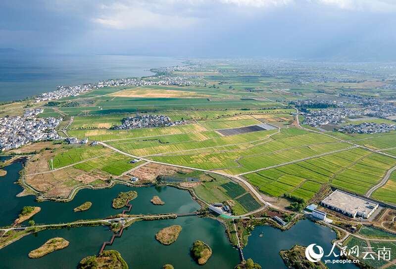 喜洲古镇的田园风景,只是洱海之畔众多生态美景的一个缩影。近年来,大理在推进洱海保护工作过程中,不断加大洱海流域农业面源污染整治力度,通过土地流转,取缔大蒜等大水大肥农作物,集中连片种植麦子、水稻。与此同时,通过环湖截污工程、确保污水不流入洱海,开展高效节水灌溉、让灌溉用水循环利用,有效保护洱海生态环境,生态田园也成为了吸引游客的亮丽风景。