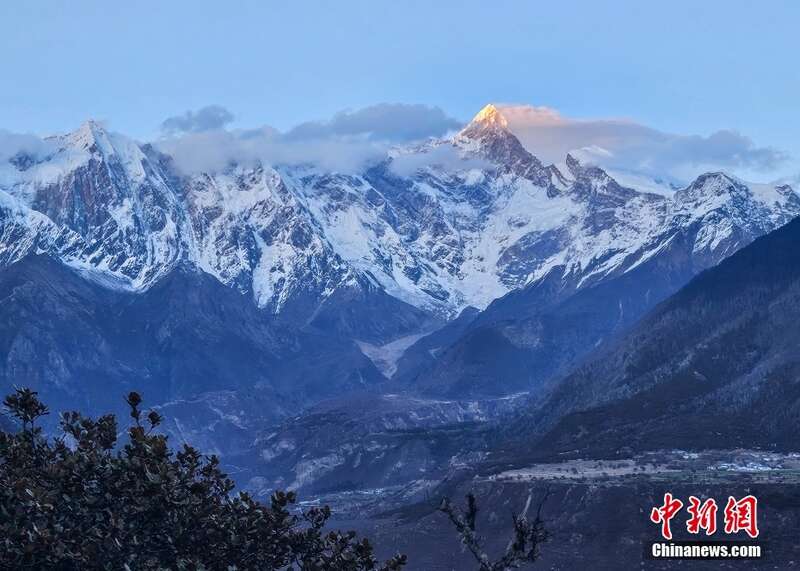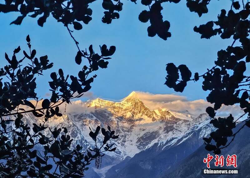图为南迦巴瓦峰显露出“日照金山”的美景。