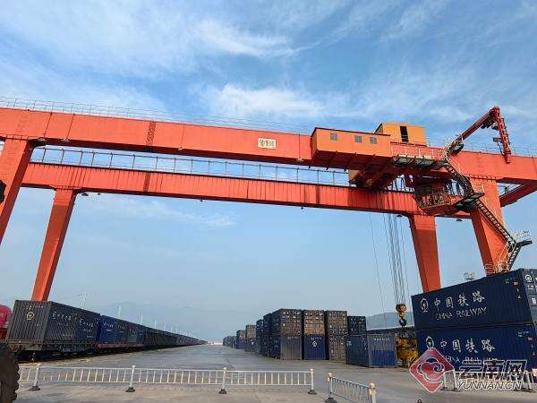 云南网讯(记者 龙彦)嘟嘟嘟……随着汽笛鸣响,一辆承载着23个集装箱的火车头缓缓驶出货场,这辆运载着数百吨铁矿石的列车将沿着中老铁路的轨迹,在4个小时之后到达云南玉溪……4月1日,“万千气象看云南”采风团队一行走进中老铁路野象谷站货场,作为中老铁路玉磨段上货运量最大的车站,这里繁忙而有序。