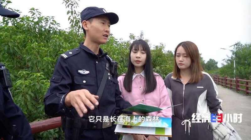 湛江红树林派出所成立于2012年,所内辖区守护的是全国面积最大的红树林湿地。民警李明霖是自成立至今一直坚守在此的三位“元老”之一。他经常把关于红树林的知识分享给游客,他相信多一个人了解红树林的重要性,就多一些守护红树林的力量。