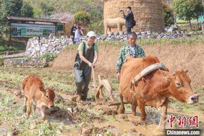 “这是我第一次和耕牛互动,还帮忙犁了地,感觉非常新奇。”在萍乡莲花县的吉内得国家稻田公园,香港青年上官同学下到农田里,在农民的指导下,体验了一回春耕。农田旁的美丽油菜花海和田园风光,也吸引着香港青年拍照和称赞。此外大家还体验了用传统的石磨磨豆腐以及制作江西传统小吃艾米果。