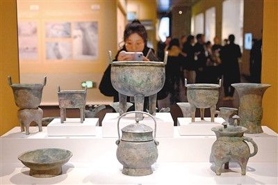 边修复、边展示的“殷墟车马遗迹展”,首次集中展示了殷墟出土的23驾马车,再现车辚辚、马萧萧的壮观景象。“王畿与四方”专题展,集中展示了山东、安徽、湖南、四川、河北、湖北等多省份的商代文物,表现了商文明对周边地区的影响。