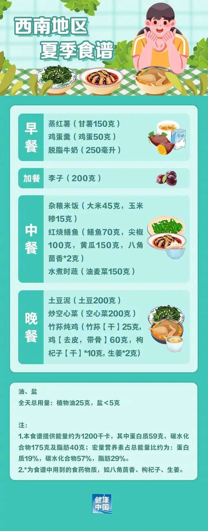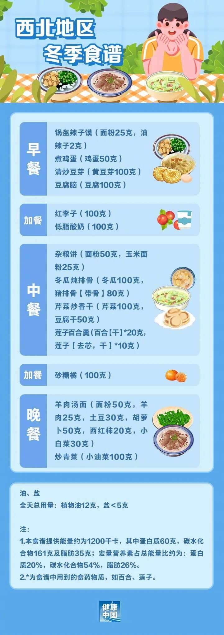 西北居民喜食面食,主食以小麦、玉米和其它杂粮为主,肉类以牛、羊肉为主,瓜果丰富,绿叶蔬菜相对较少。居民夏季喜清淡素食,冬季喜酸辣咸厚味食品。较多居民日常饮水量不足,对于肥胖人群尤其应保障充足日常饮水量。本系列食谱在遵循肥胖患者食养原则的基础上,采用食物交换份法,合理搭配西北地区各季特色食材编制而成。