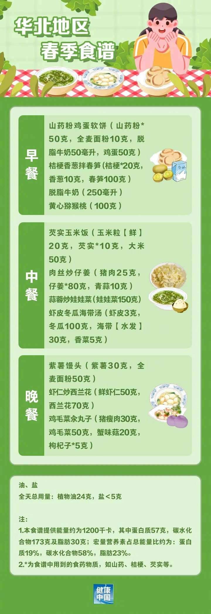 华北地区多数地方喜面食及畜禽肉,蔬菜和水产类摄入不多,厚重咸口菜品居多。本系列食谱遵循肥胖患者食养原则,合理搭配华北地区各季特色食材,尊重本地区传统饮食文化,保留特色饮食,增加了蔬菜及水产品的摄入,按照四季分明的特点强调了应季食物的选择,并控制油、盐、糖使用量。